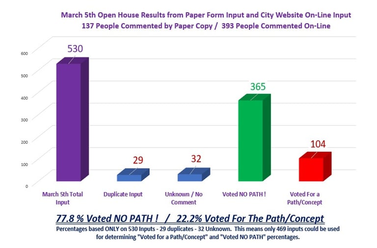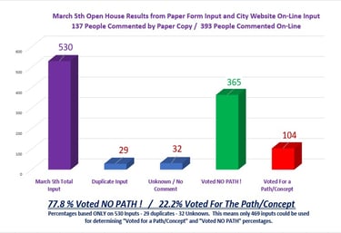 Percentage on the image was derived from 469 actual inputs for or against the path and made up 100% of the opinion for or against the path.