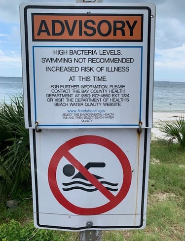 Current city posted/approved warning sign found on Beach Drive property regarding our Bay off Beach Drive. We have bigger problems as a community and city if our "elected" Commissioners approve development of an $8,000,000 plus NEW Multi-Use path on Beach Drive rather than investing in cleaning up the Bay for all Panama City residents to enjoy without risk of illness if men, women and children enter the water.