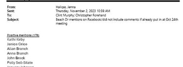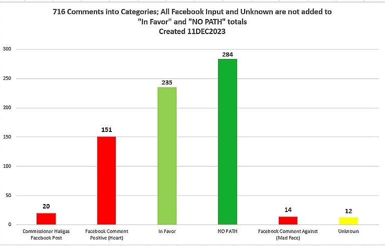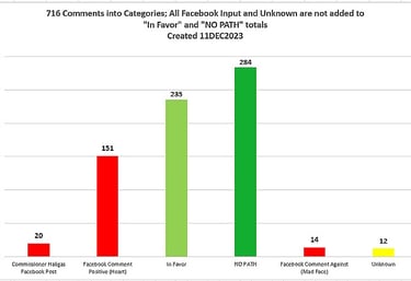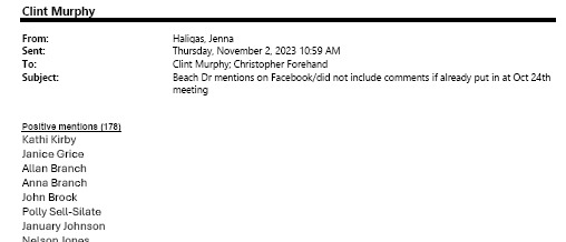 UPDATE 13MAR2024: Emails obtained about the path revealed communication about using "FACEBOOK " input started on 02 NOV by the Beach Drive project lead, company awarded the design contract and their media group and Commissioner Haligas regarding emoji's to add to the comment count as seen below in Artifact B. Note the only data found about this communication was on 02 November, the day before the comment submission Deadline. Who had the complete list of all comment results prior to NOV 02? Not the public. Imagine that....