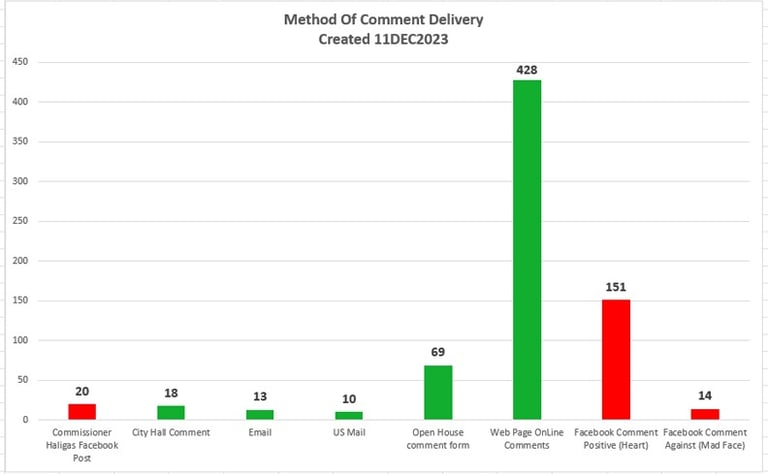 02 November: Commissioner Haligas' submitted via email 178 Face Book emoji inputs citing Face book (Heart) and Face Book (Mad Face) (Artifact "B" below). These emoji elements were added to the overall total (See chart above). This evolution was solely orchestrated internally by city officials.